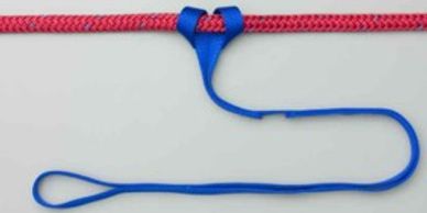 Pass the loop of the strap around the harness, strap, or rope. Thread the other end of the strap through the loop. Make sure the strap lies neatly and then pull it tight.