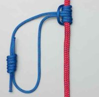 Form a bight in the thicker rope (blue) and hold it in one hand. Pass the thinner rope (red) through the bight and behind the (blue) tail and standing ends in that order. Finally, tuck the smaller rope under itself to finish the knot.